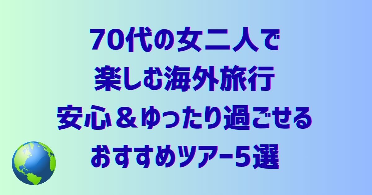 この記事では、そんな70代女性の二人旅にぴったりな海外の行き先と、安心して参加できるツアーを紹介します。